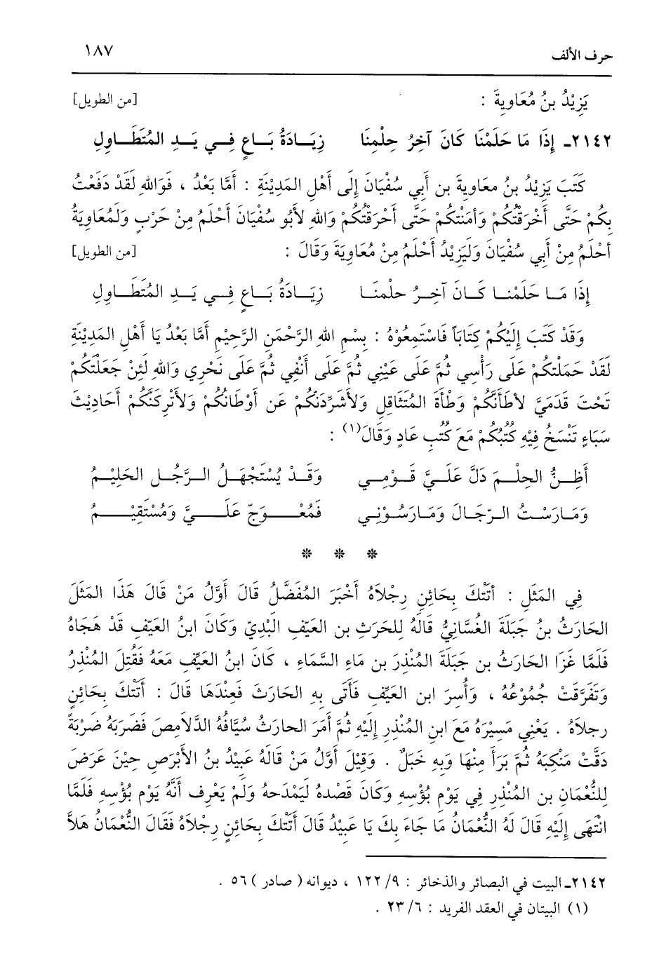 2142 - البيت في البصائر والذخائر: 9/ 122، ديوانه (صادر) 56.