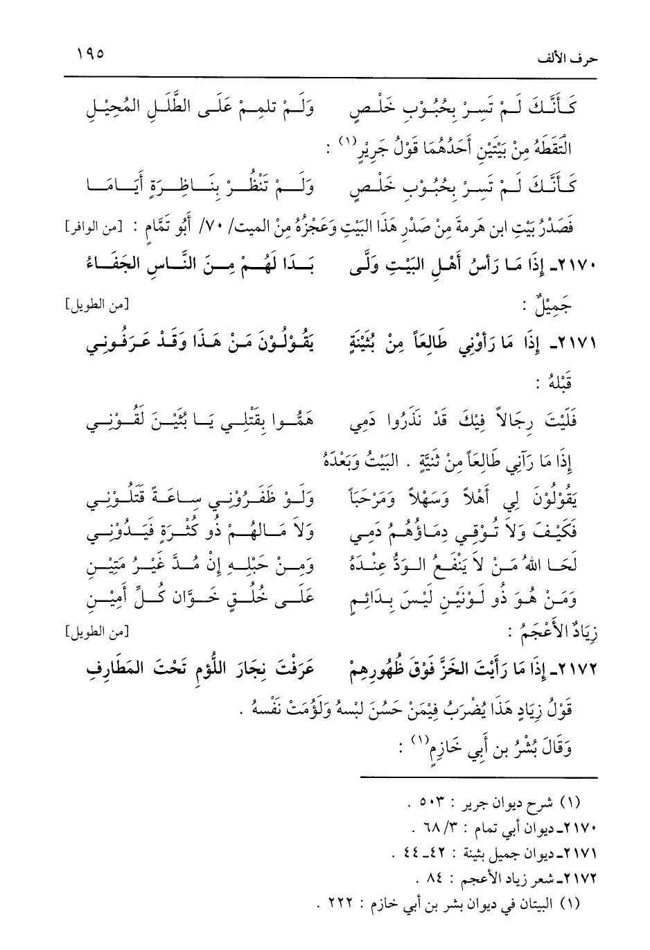 الْتَقَطَهُ مِنْ بَيْتَيْنِ أَحَدُهُمَا قَوْلُ جَرِيْرٍ (¬1):