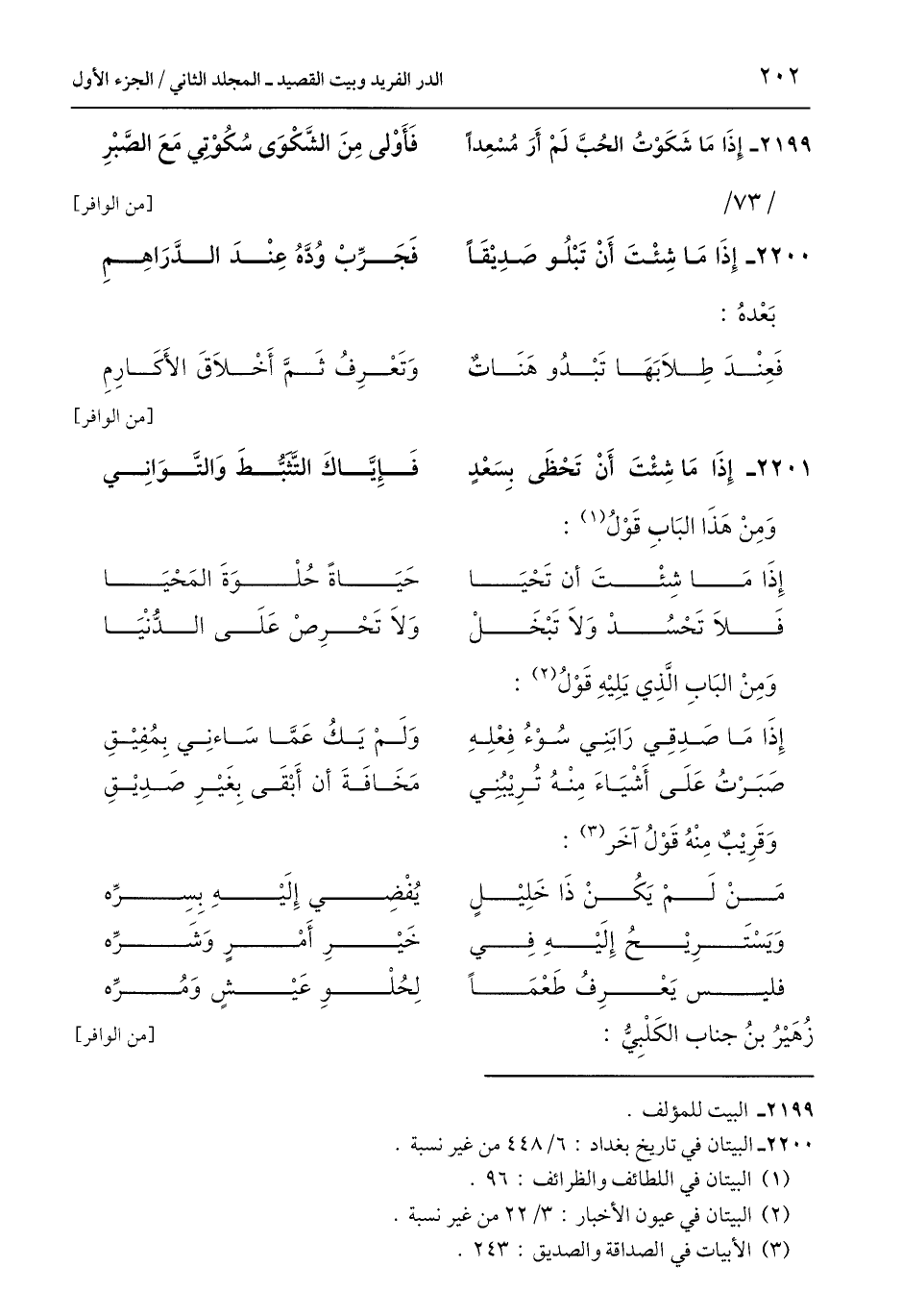 2200 - إِذَا مَا شِئْتَ أَنْ تَبْلُو صَدِيْقًا ... فَجَرِّبْ وُدَّهُ عِنْدَ الدَّرَاهِم