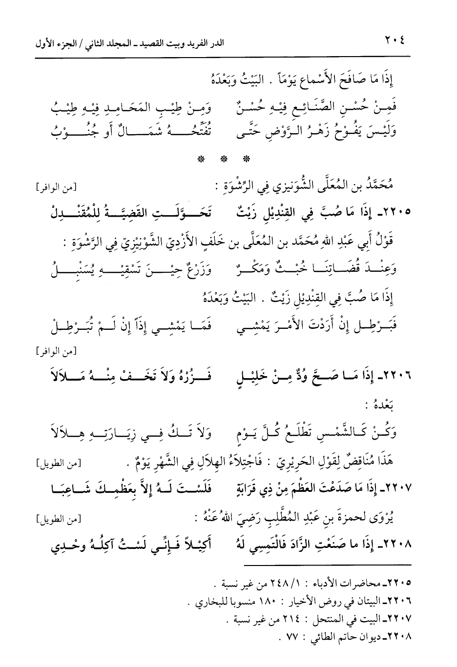 2205 - محاضرات الأدباء: 1/ 248 من غير نسبة.