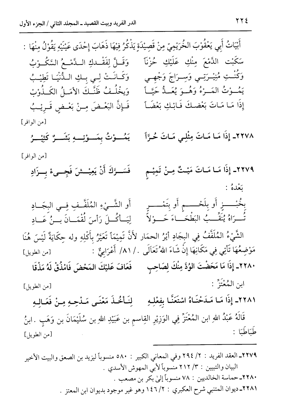 2280 - حماسة الخالديين: 78 منسوبا إلى بكر بن مصعب.