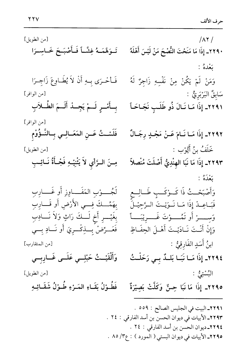 2295 - إِذَا مَا نَبَا حِسٌّ وَكَلَّتْ بَصِيْرَةٌ ... فَطُوْلُ بَقَاءِ المَرْءِ طُوْلُ شَقَائِهِ