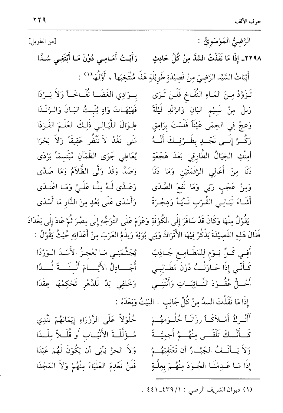 (¬1) ديوان الشريف الرضي: 1/ 439 - 441.
