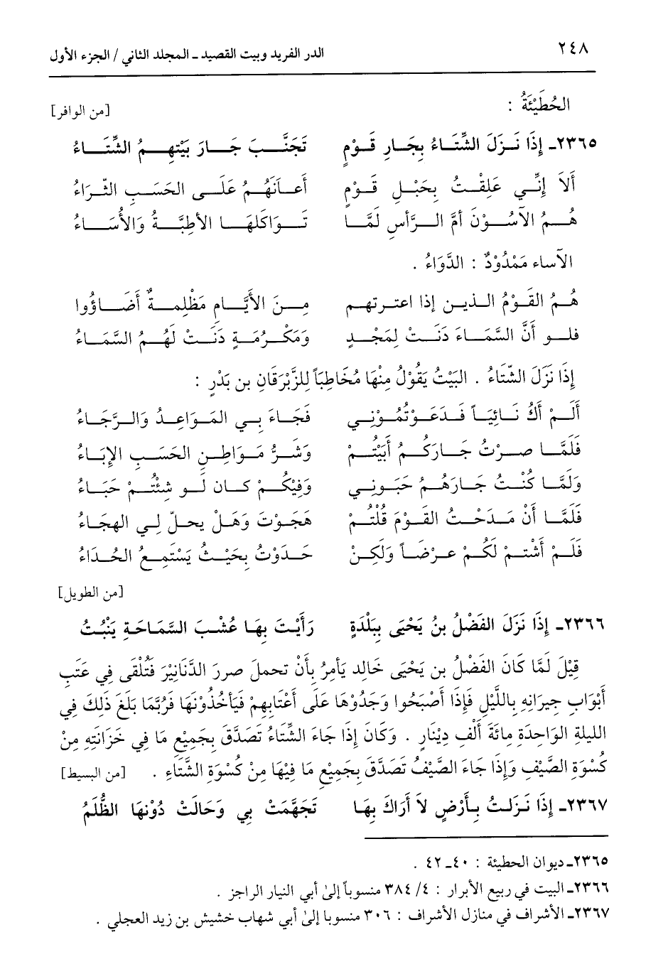 2365 - ديوان الحطيئة: 40 - 42.