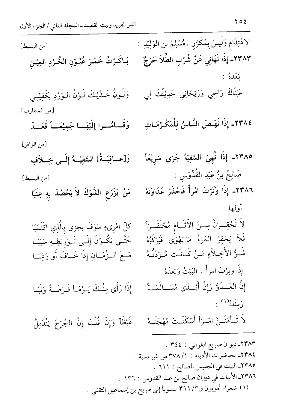 2386 - الأبيات في ديوان صالح بن عبد القدوس: 136.