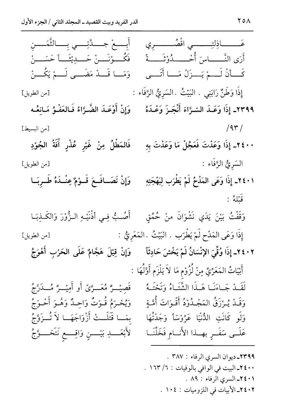 2399 - إِذَا وَعَدَ السّرَّاءَ أَنْجَزَ وَعْدَهُ ... وَإِنْ أَوْعَدَ الضَّرَّاءُ فَالعَفْوُ مَانِعُه