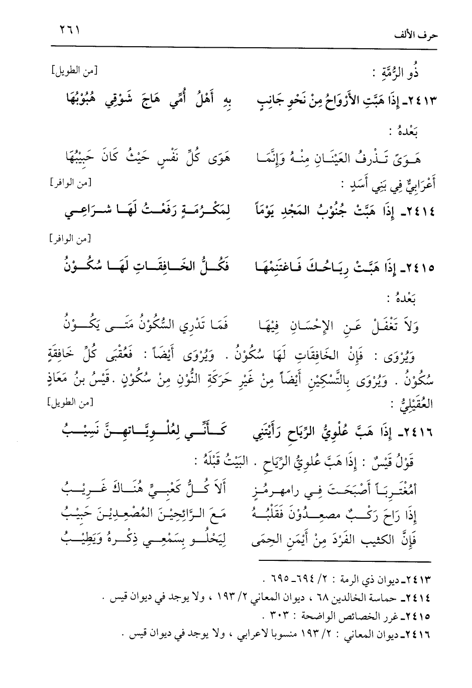 2416 - ديوان المعاني: 2/ 193 منسوبًا لأعرابي، ولا يوجد في ديوان قيس.