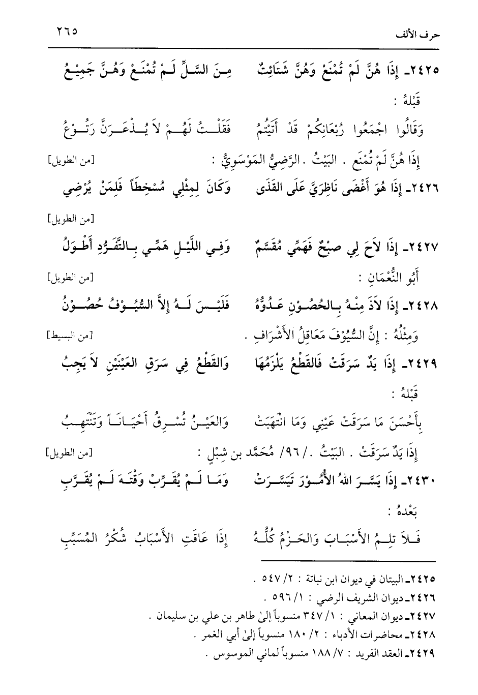 2426 - ديوان الشريف الرضي: 1/ 596.