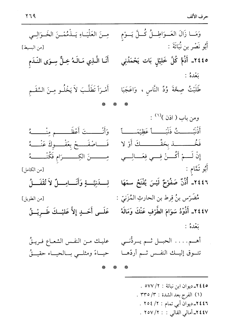 2447 - أَذُوْدُ سَوَامَ الطَّرْفِ عَنْكَ وَمَالَهُ ... عَلَى أَحَدٍ إِلَّا عَليْكَ طَرِيْقُ