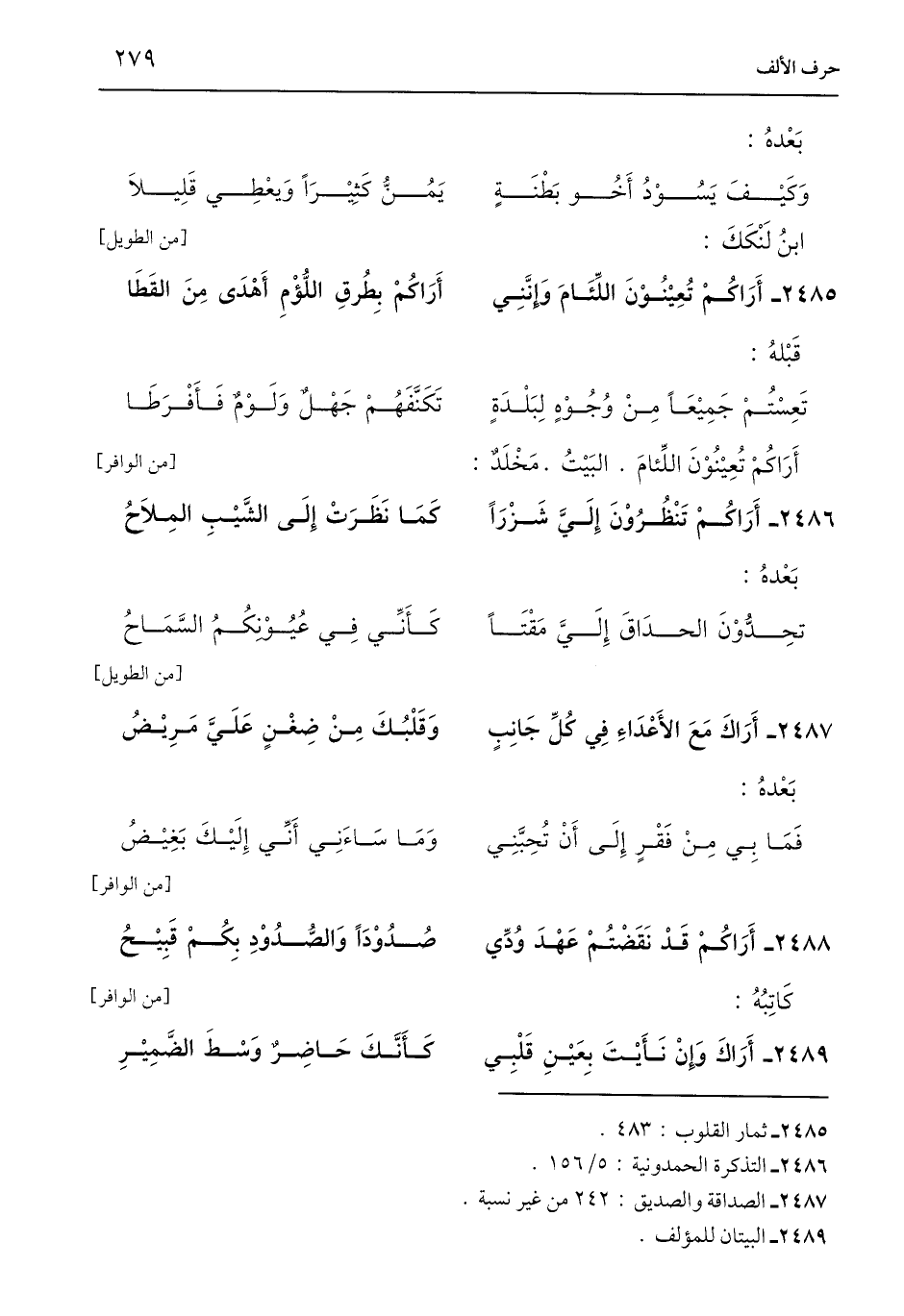 2488 - أَرَاكُمْ قَدْ نَقَضْتُمْ عَهْدَ وُدِّي ... صُدُوْدًا وَالصُّدُوْدِ بِكُمْ قَبِيْحُ