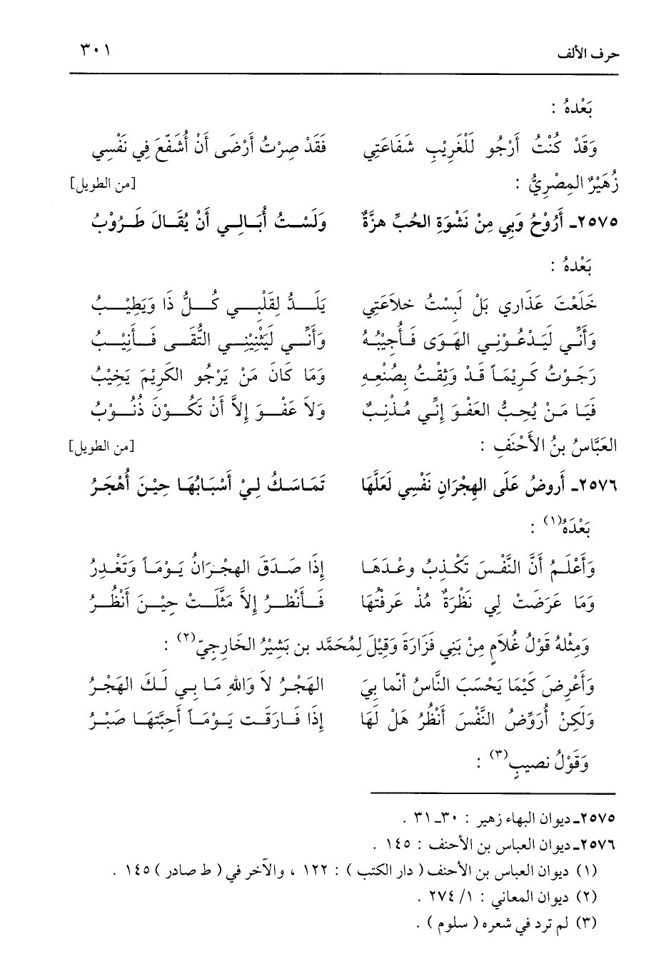 2576 - أَروضُ عَلَى الهِجْرَانِ نَفْسِي لَعَلَّهَا ... تَمَاسَكُ لِيْ أَسْبَابُهَا حِيْنَ أُهْجَرُ