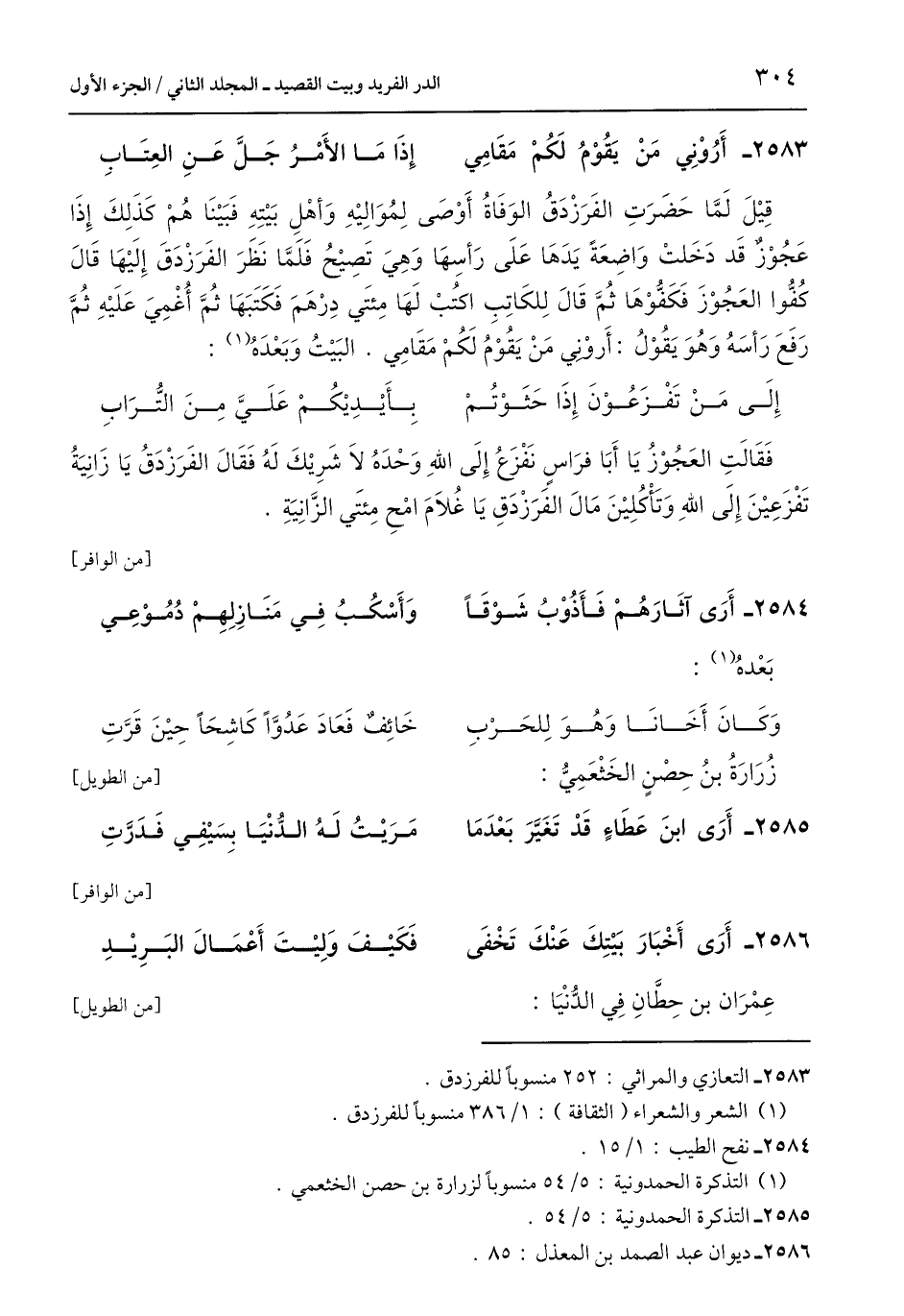 2583 - التعازي والمراثى: 252 منسوبًا للفرزدق.