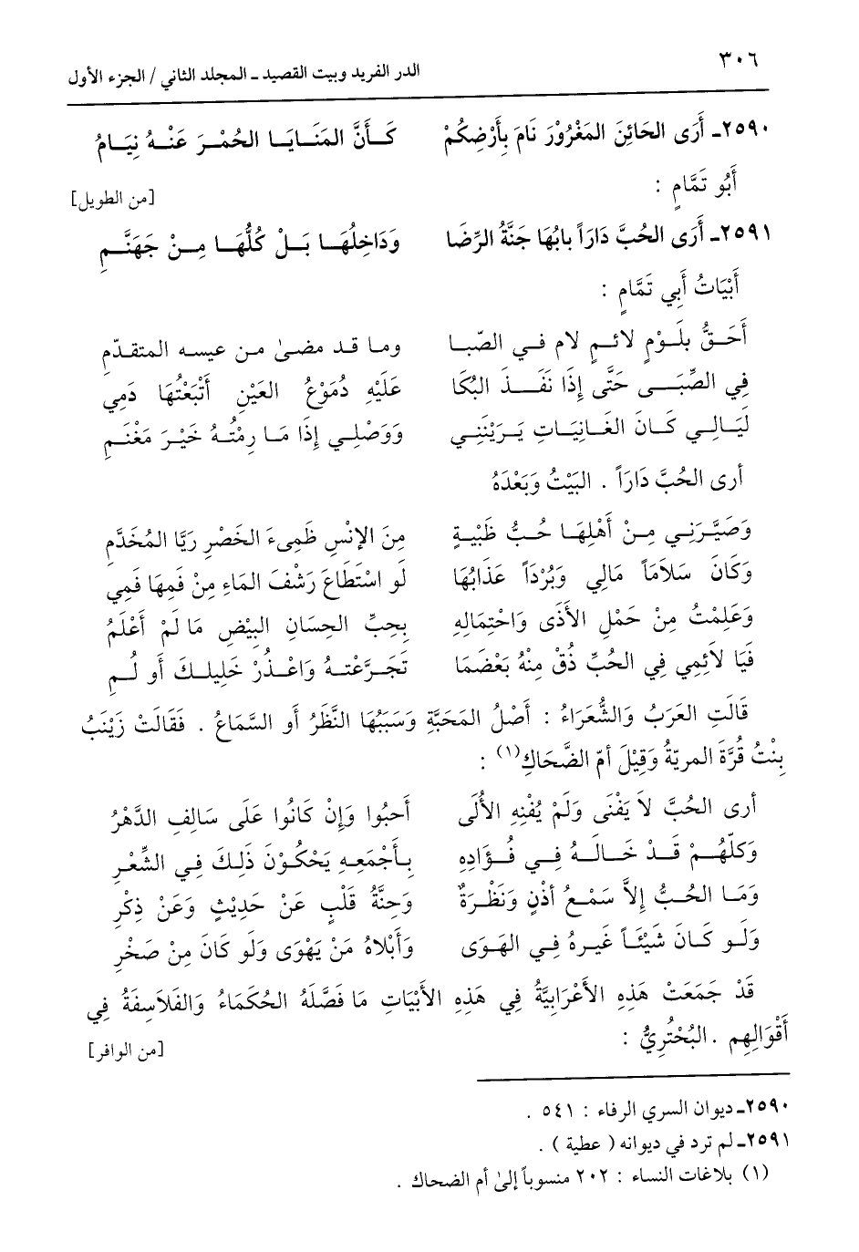 2591 - أَرَى الحُبَّ دَارًا بابُهَا جَنَّةُ الرِّضَا ... وَدَاخِلُهَا بَلْ كُلُّهَا مِنْ جَهَنَّمِ