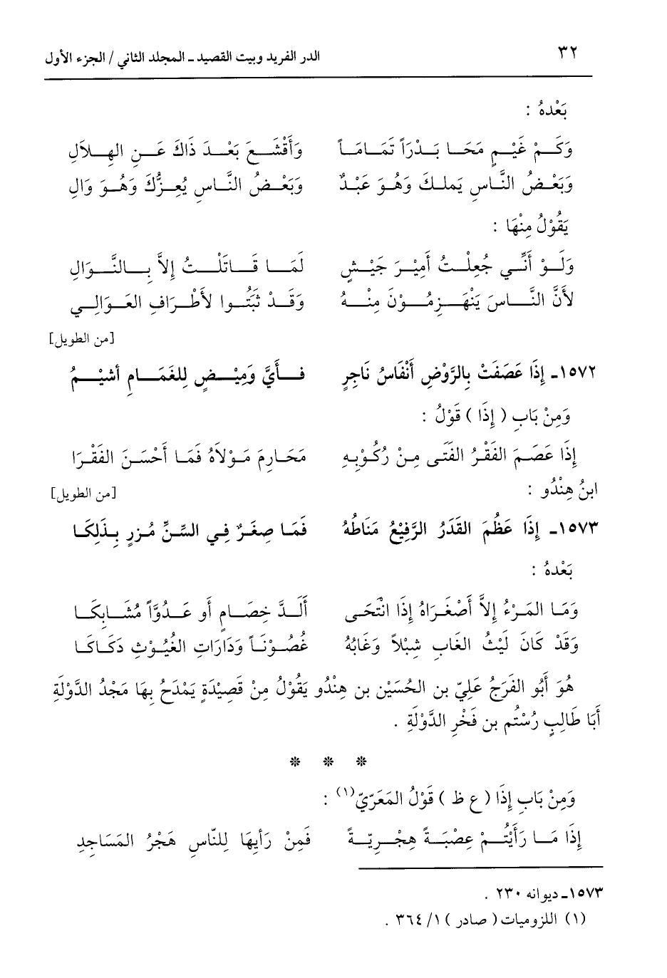 هُوَ أَبُو الفَرَجُ عَلِيّ بن الحُسَيْن بن هِنْدُو يَقُوْل مِنْ قَصِيْدَةٍ يَمْدَحُ بِهَا مَجْدُ الدَّوْلَةِ أَبَا طَالِبٍ رُسْتُم بن فَخْرِ الدَّوْلَةِ.