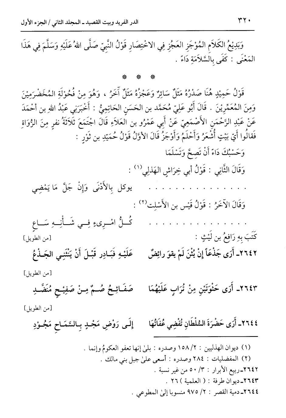 2643 - أَرَى حَثْوَتَيْنِ مِنْ تُرَابٍ عَلَيْهُمَا ... صَفَائِحُ صُمٌ مِنْ صَفِيْحٍ مُنَضَّدِ