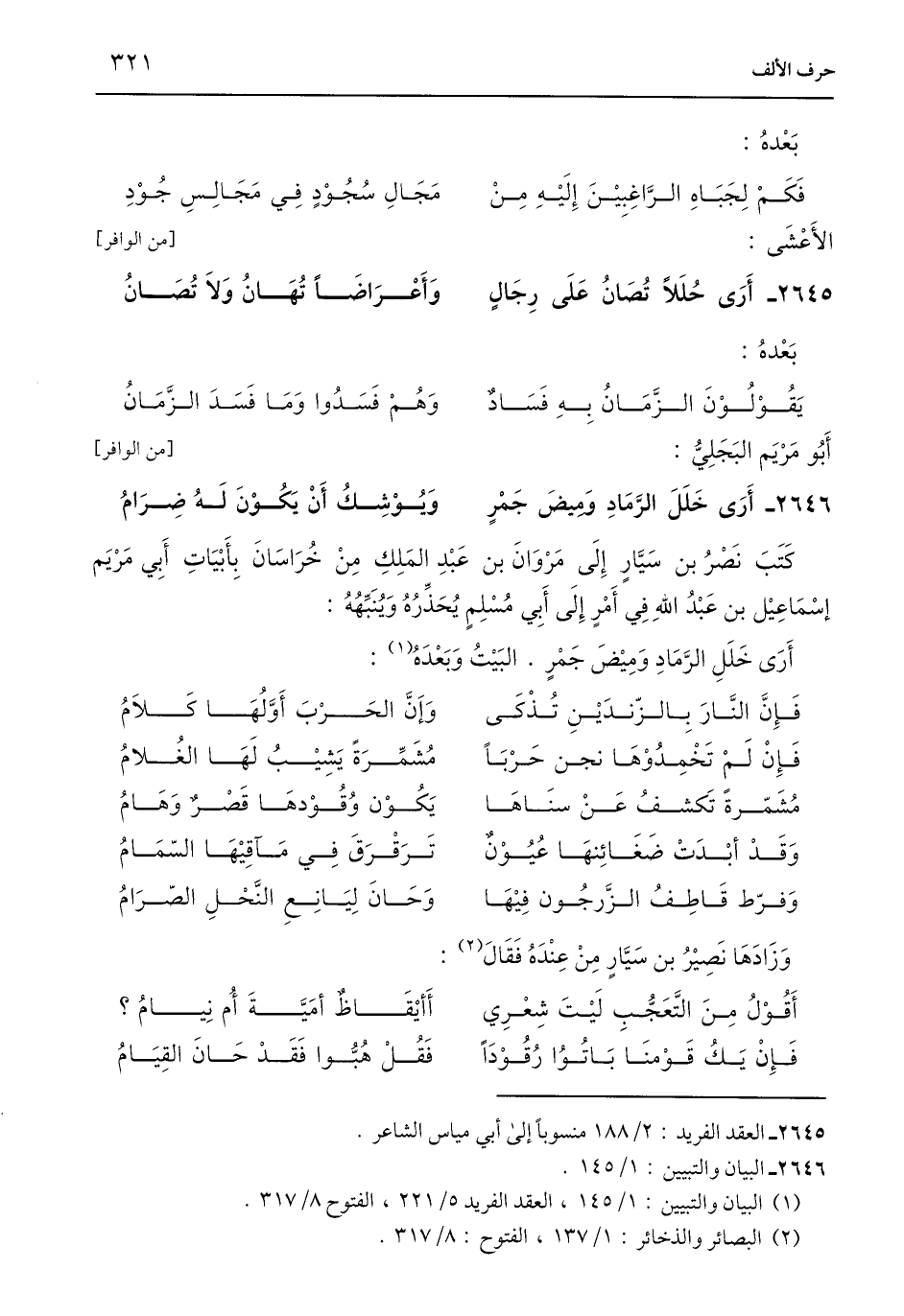 2645 - العقد الفريد: 2/ 188 منسوبًا إلى أبي مياس الشاعر.