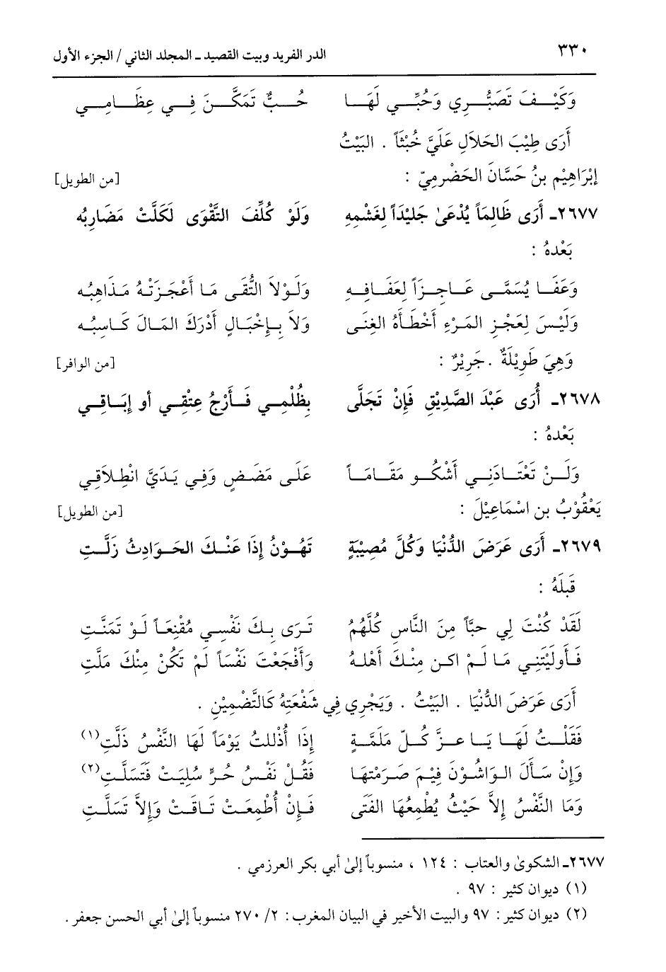 2677 - الشكوى والعتاب: 124، منسوبًا إلى أبي بكر العرزمي.