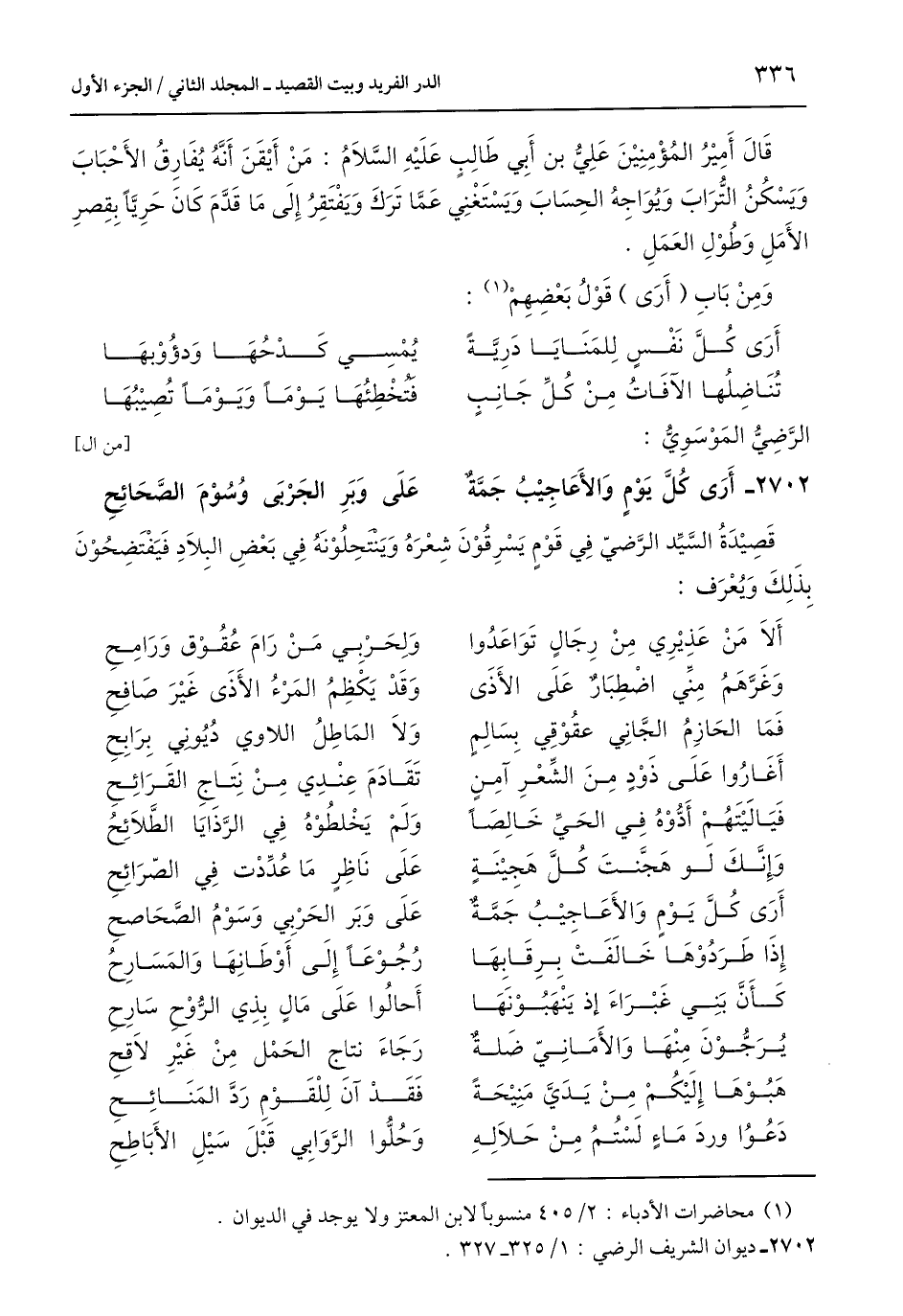 2702 - ديوان الشريف الرضي: 1/ 325 - 327.