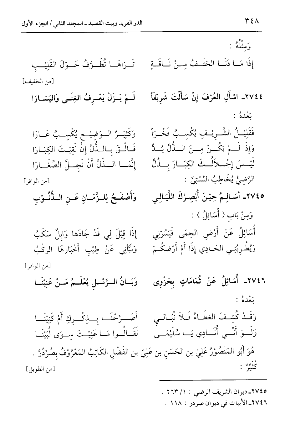 2745 - ديوان الشريف الرضي: 1/ 263.