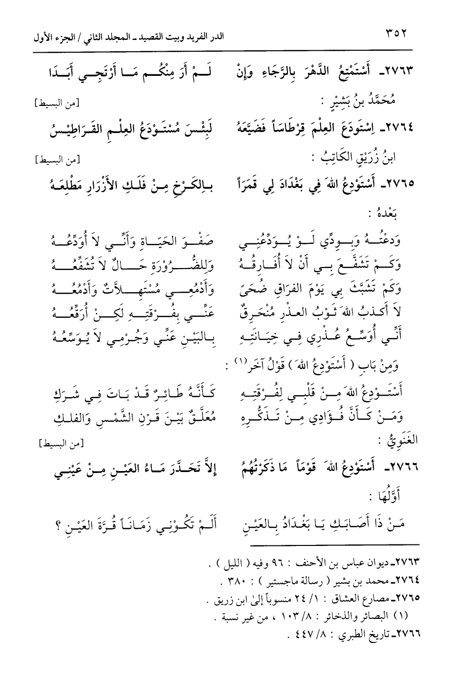 2765 - أَسْتَوْدع اللَّهَ فِي بَغْدَادَ لِي قَمَرًا ... بالكَرْخِ مِنْ فَلَكِ الأَزْرَارِ مَطْلِعَهُ