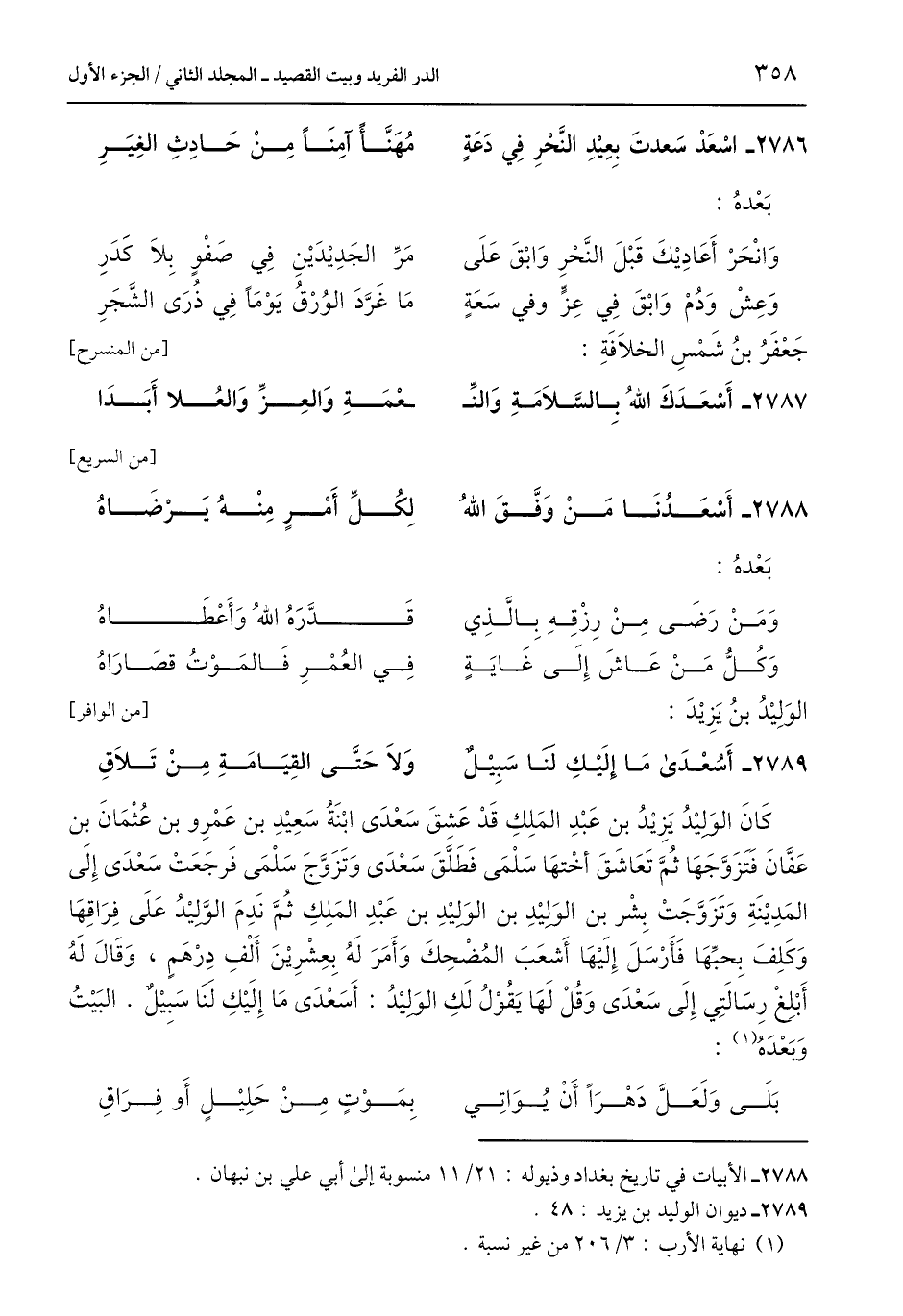 2786 - اسْعَدْ سَعدتَ بِعِيْدِ النَّحْرِ فِي دَعَةٍ ... مُهَنَّأً آمِنًا مِنْ حَادِثِ الغِيَرِ