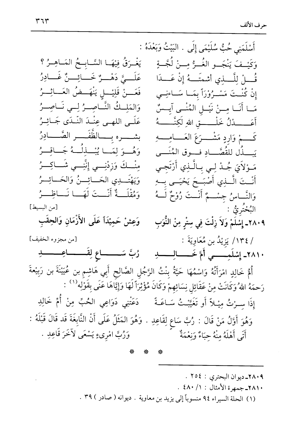 (¬1) الحلة السيراء 94 منسوبًا إلى يزيد بن معاوية. ديوانه (صادر) 39.