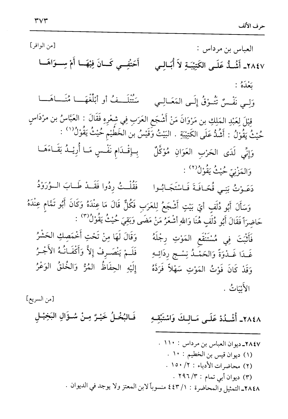 2847 - ديوان العباس بن مرداس: 110.