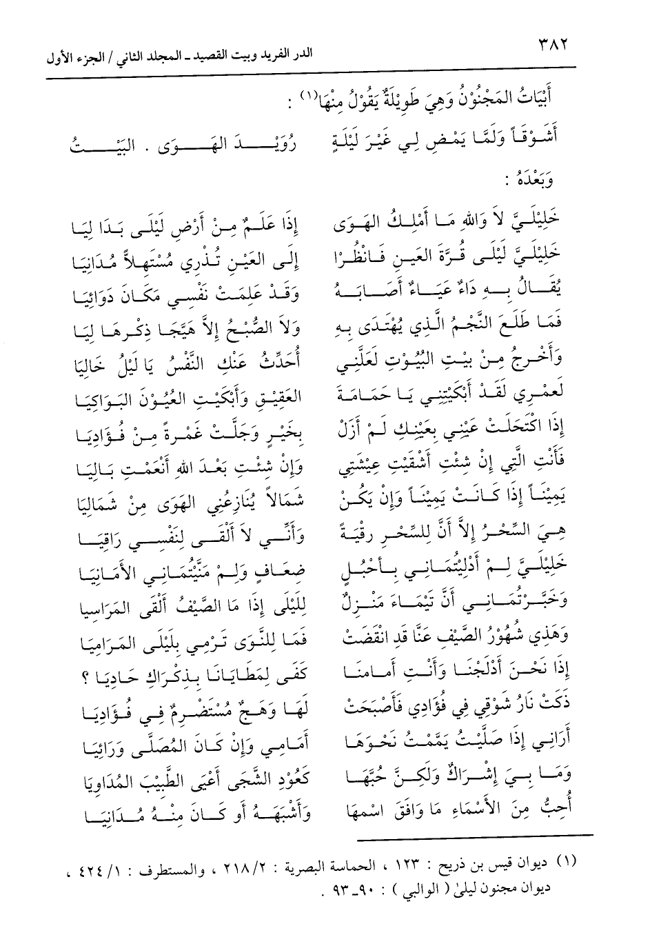 (¬1) ديوان قيس بن ذريح: 123، الحماسة البصرية: 2/ 218، والمستطرف: 1/ 424، ديوان مجنون ليلى (الوالبي): 90 - 93.