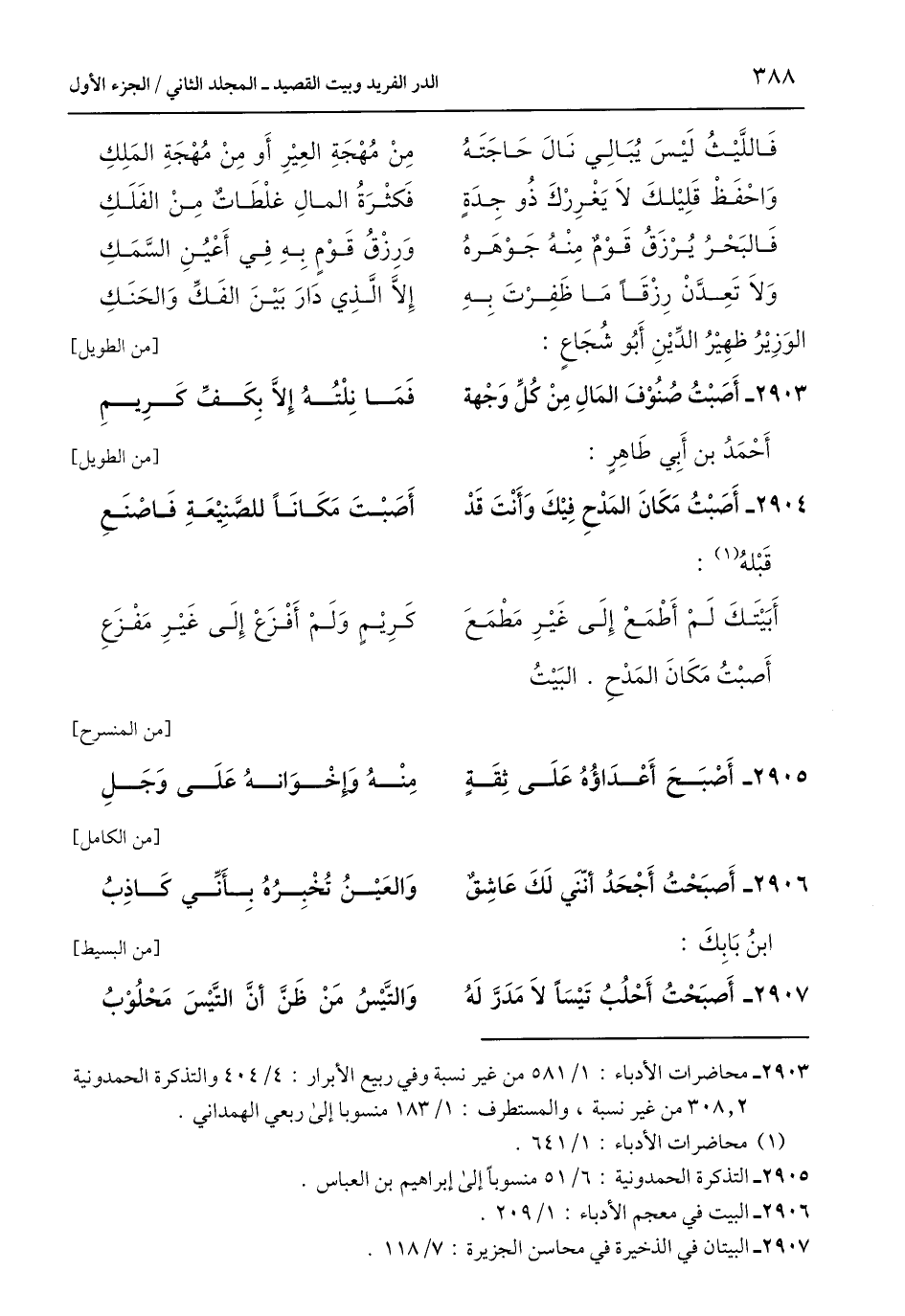 2905 - التذكرة الحمدونية: 6/ 51 منسوبًا إلى إبراهيم بن العباس.