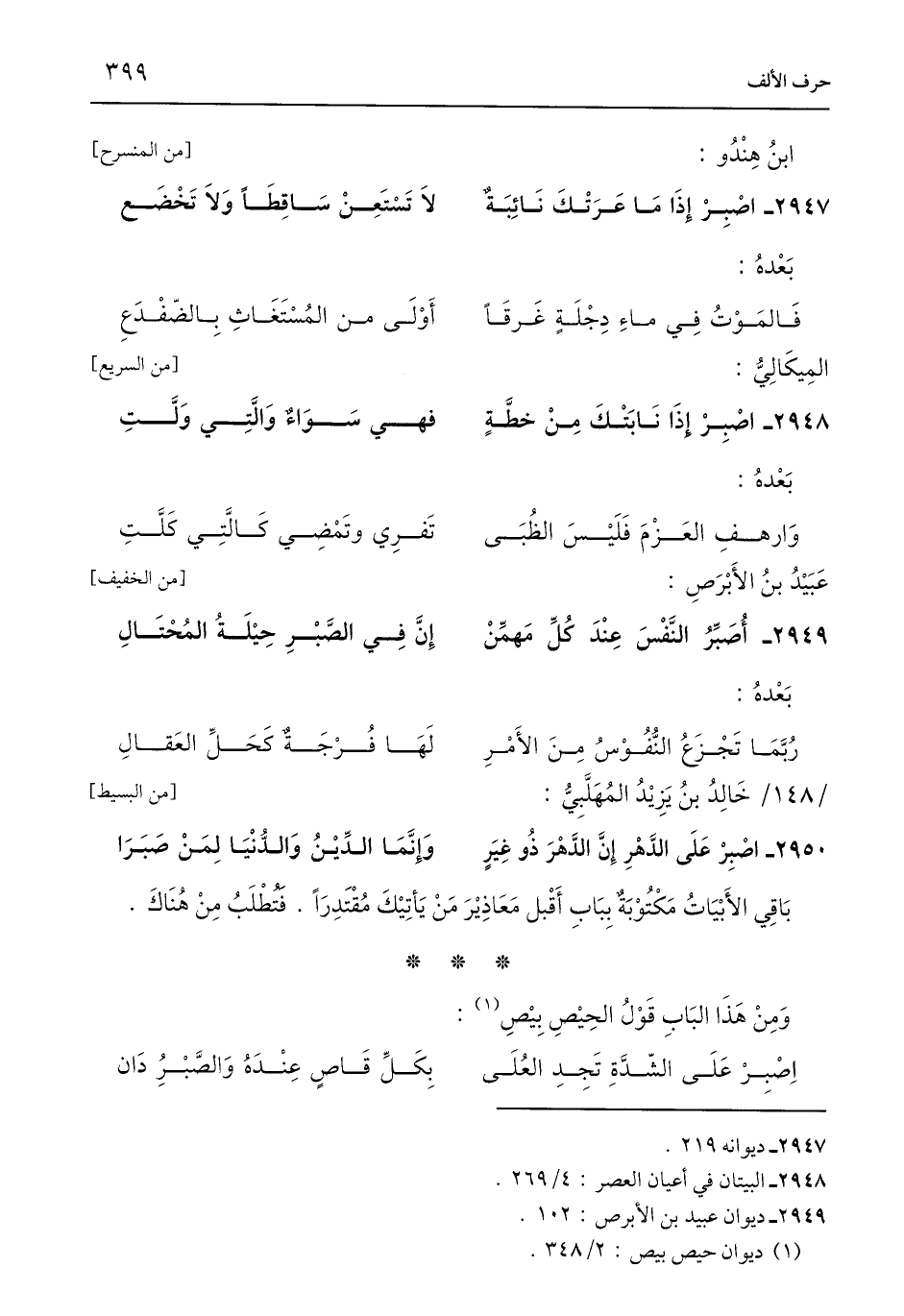 2950 - اصْبِرْ عَلَى الدَّهْرِ إِنَّ الدَّهْرَ ذُو غِيَرٍ ... وَإِنَّمَا الدِّيْنُ وَالدُّنْيَا لِمَنْ صَبَرَا