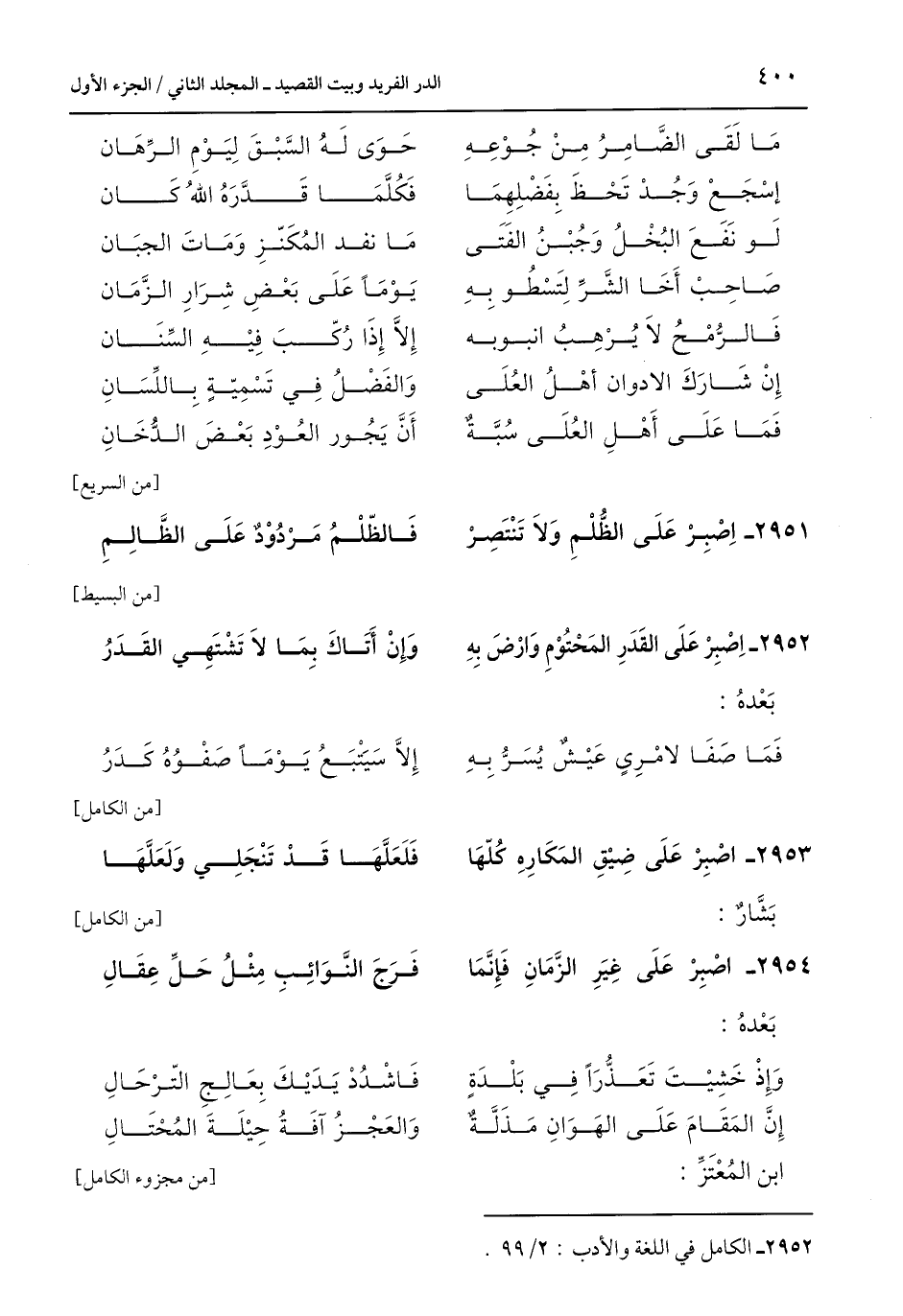 2952 - الكامل في اللغة والأدب: 2/ 99.