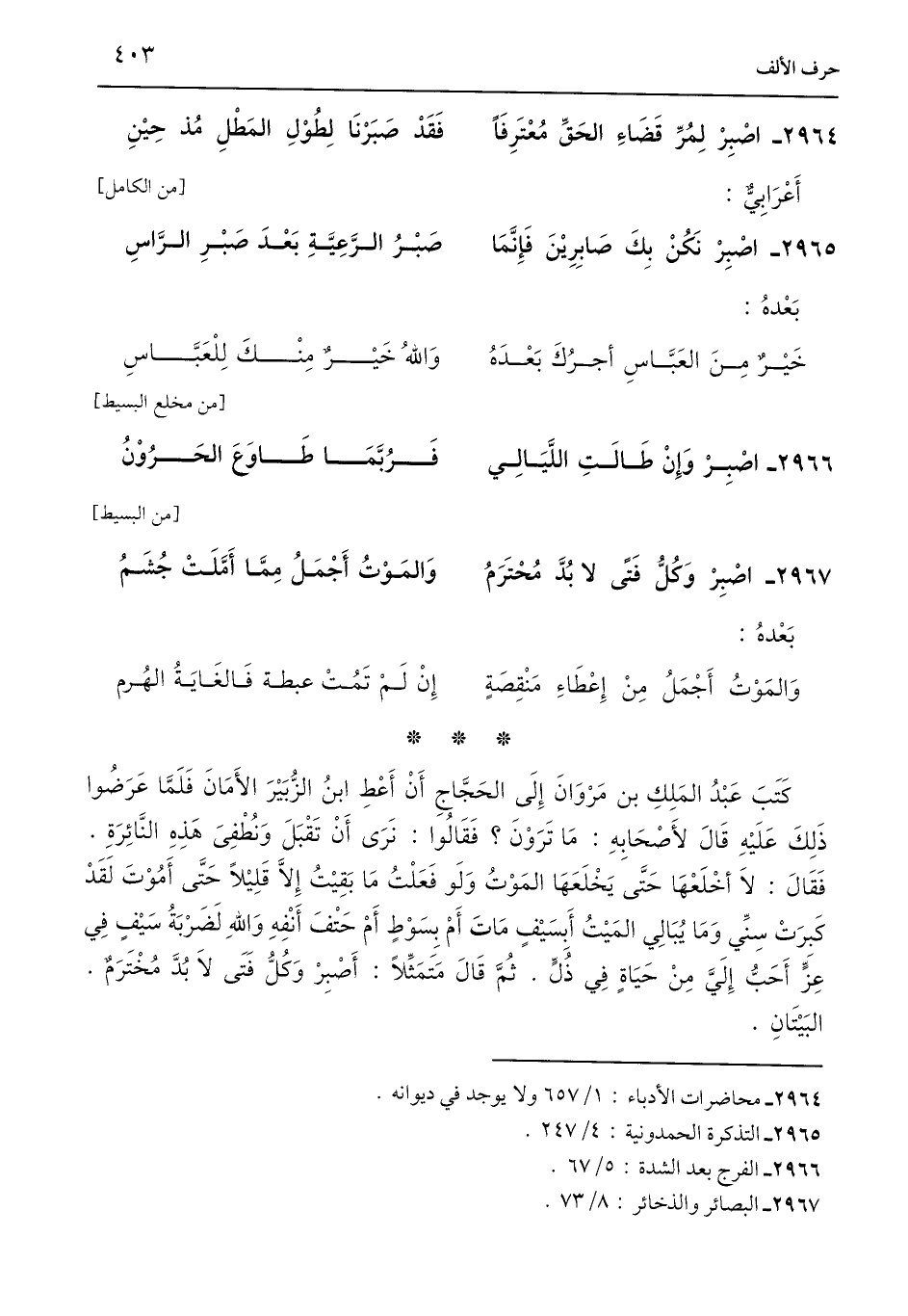 2965 - اصْبِرْ نَكُنْ بِكَ صَابِرِيْنَ فَإِنَّمَا ... صَبْرُ الرَّعِيَّةِ بَعْدَ صَبْرِ الرَّاسِ