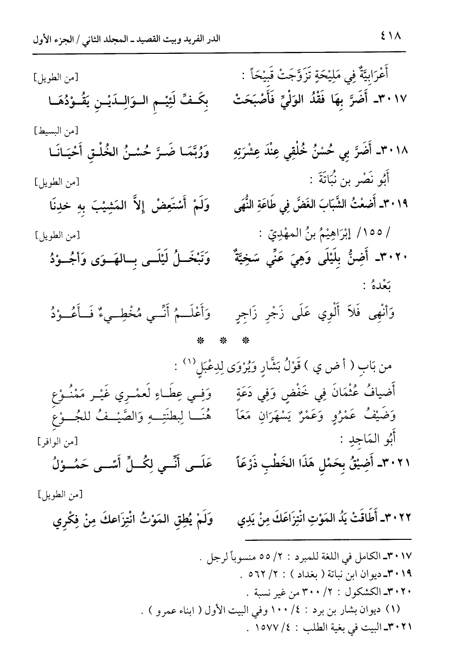 3017 - الكامل في اللغة للمبرد: 2/ 55 منسوبًا لرجل.