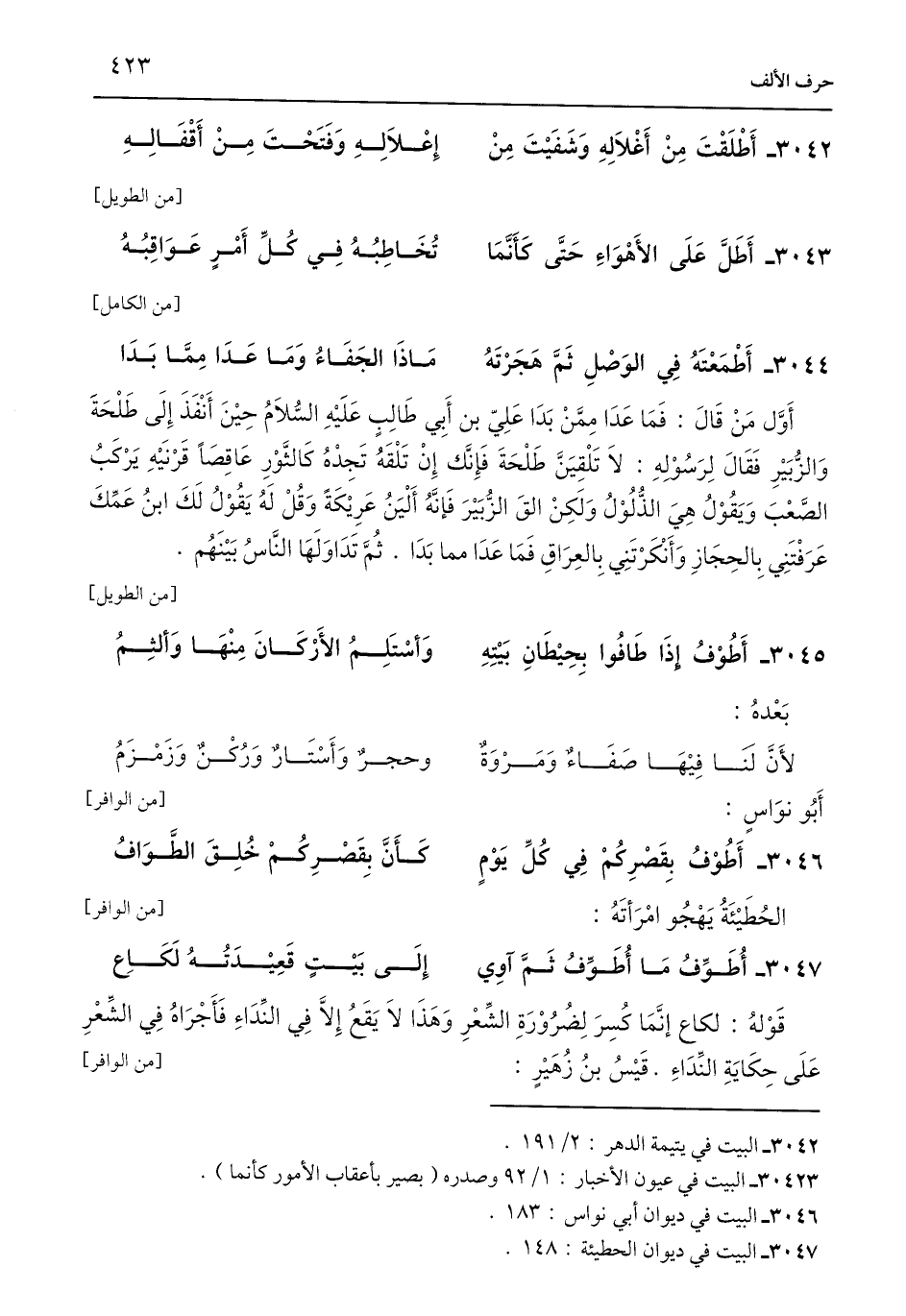 3045 - أَطُوْفُ إِذَا طَافُوا بِحِيْطَانِ بَيْتِهِ ... وَأسْتَلِمُ الأَرْكانَ مِنْهَا وَألثِمُ