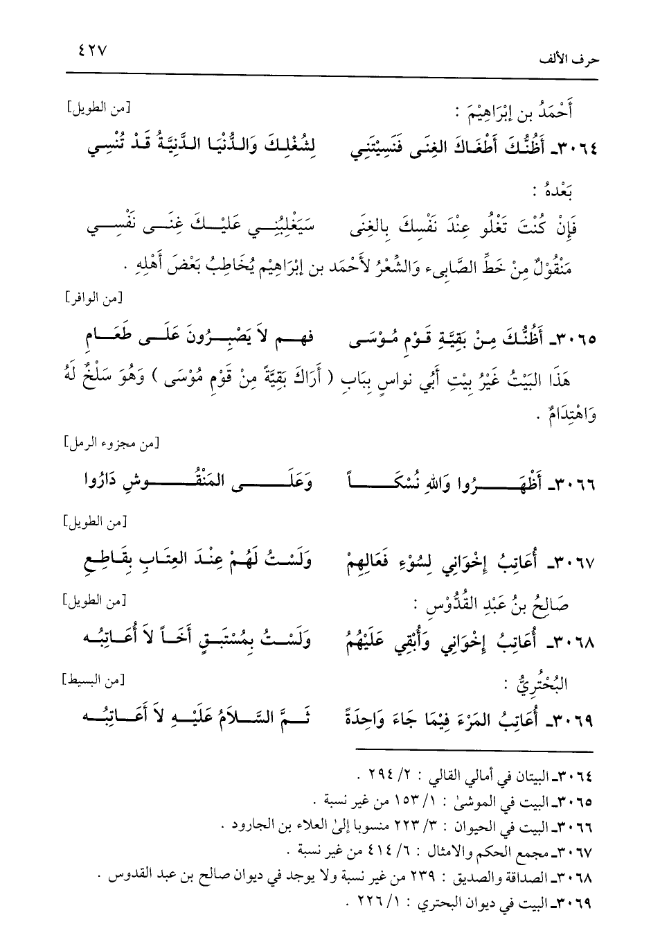 3068 - الصداقة والصديق: 239 من غير نسبة ولا يوجد في ديوان صالح بن عبد القدوس.