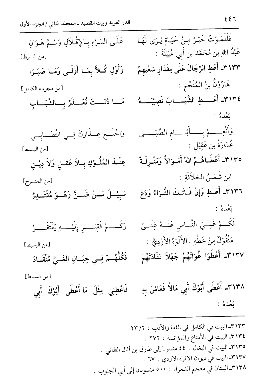 3133 - البيت في الكامل في اللغة والأدب: 2/ 23.