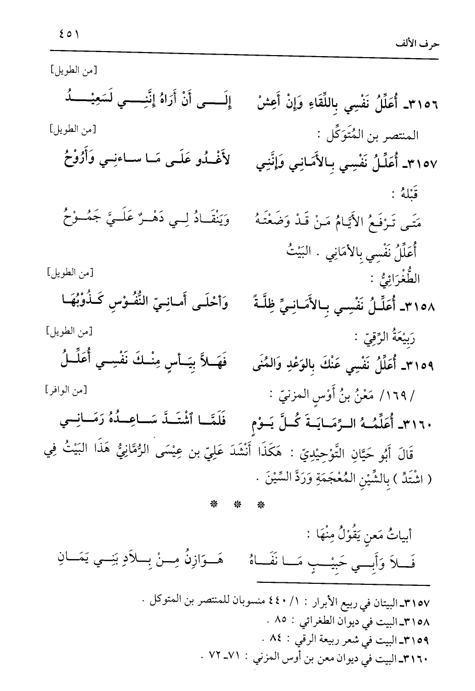 3157 - أُعَلِّلُ نَفْسِي بِالأَمَانِي وَإنَّنِي ... لأَغْدُو عَلَى مَا ساءنِي وَأَرُوْحُ