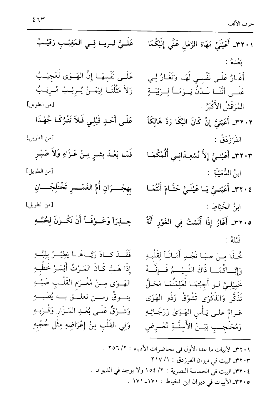 3201 - أَعَيْنَيْ مَهَاة الرَّمْلِ عَنِّي إِلَيْكُمَا ... عَلَيَّ لريا فِي المَغِيْبِ رَقيْبُ