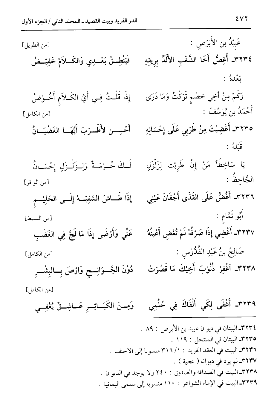 3236 - البيت في العقد الفريد: 1/ 316 منسوبا إلى الأحنف.