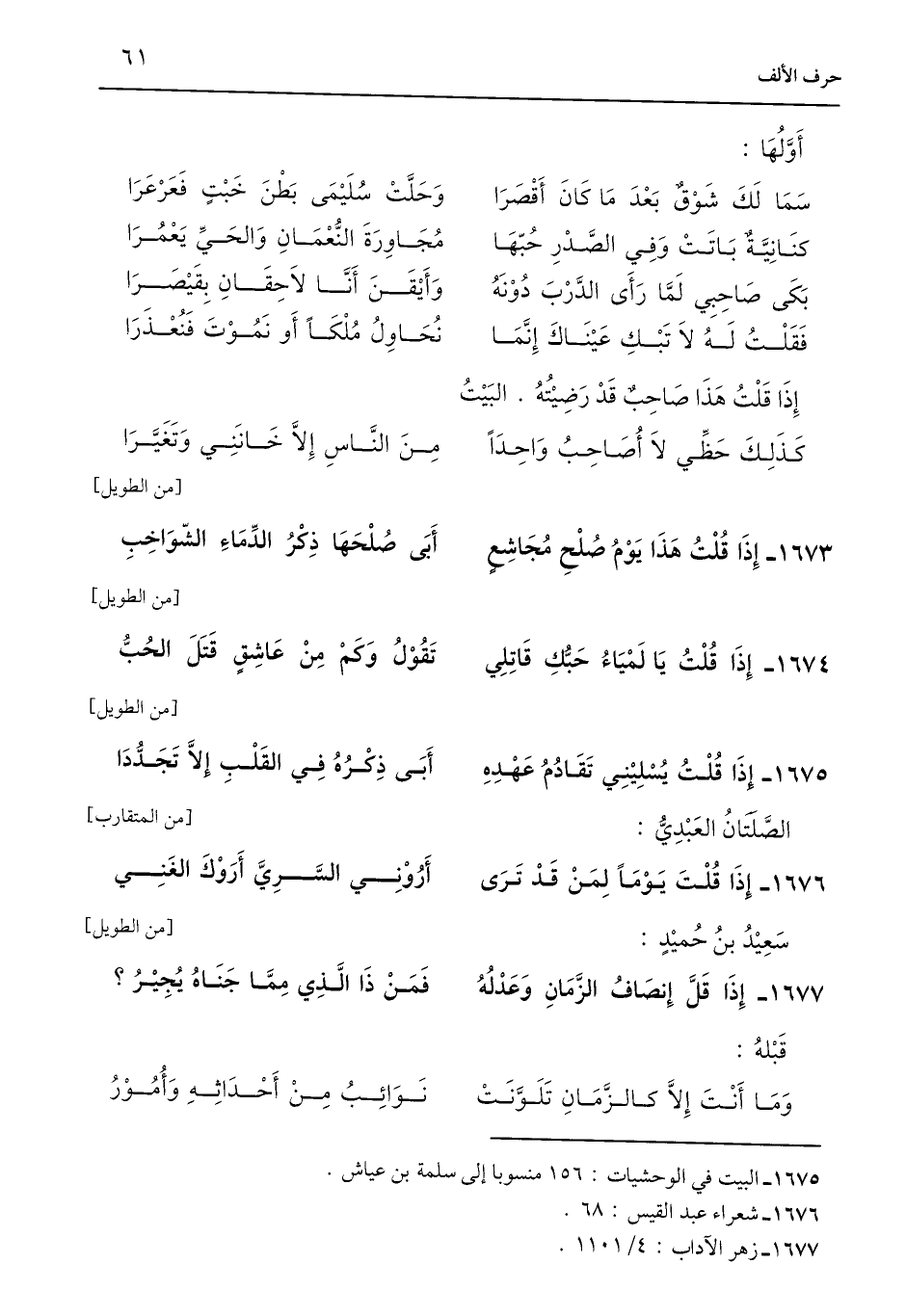1675 - البيت في الوحشيات: 156 منسوبا إلى سلمة بن عياش.