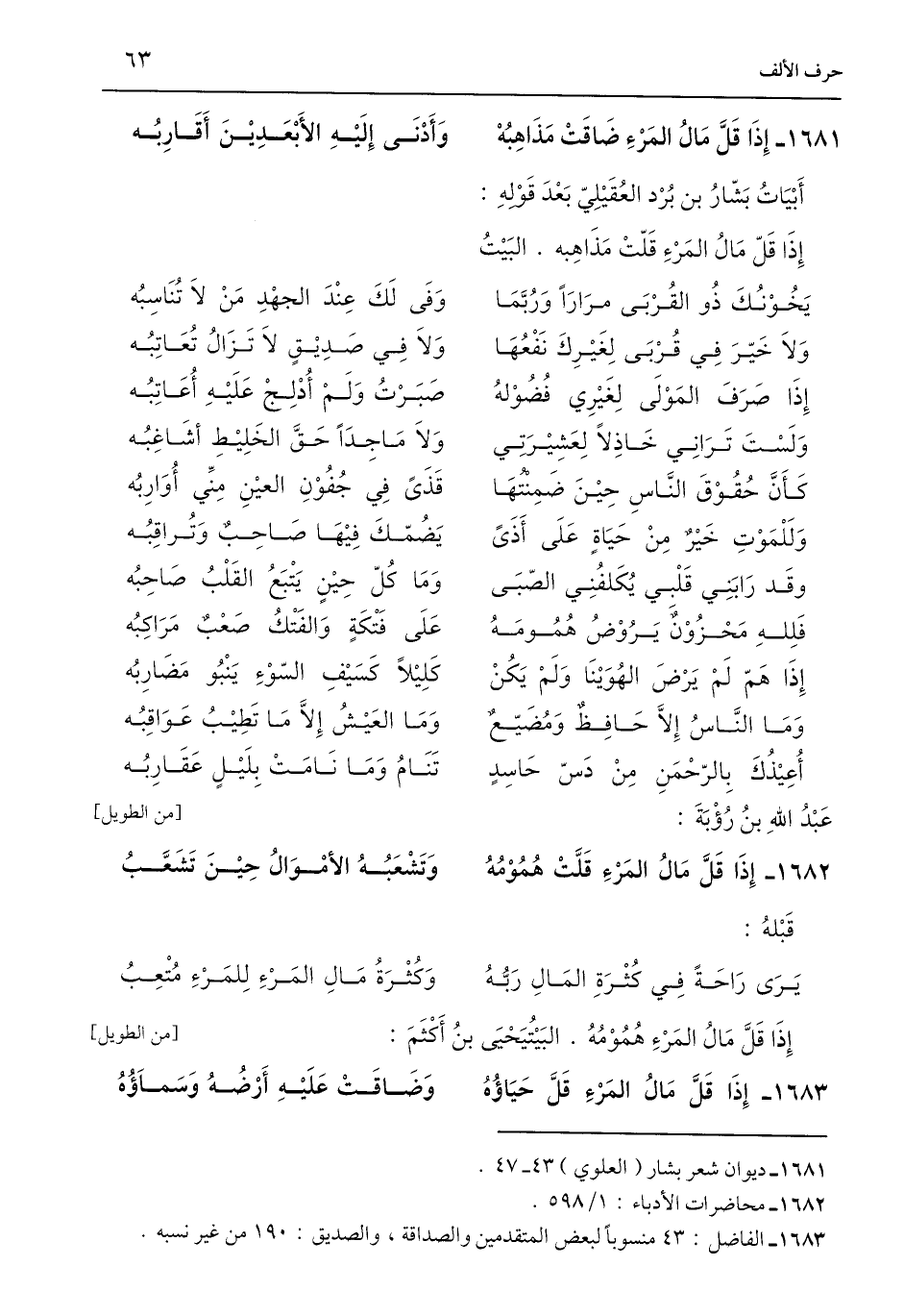 1683 - الفاضل: 43 منسوبًا لبعض المتقدمين والصداقة، والصديق: 190 من غير نسبه.