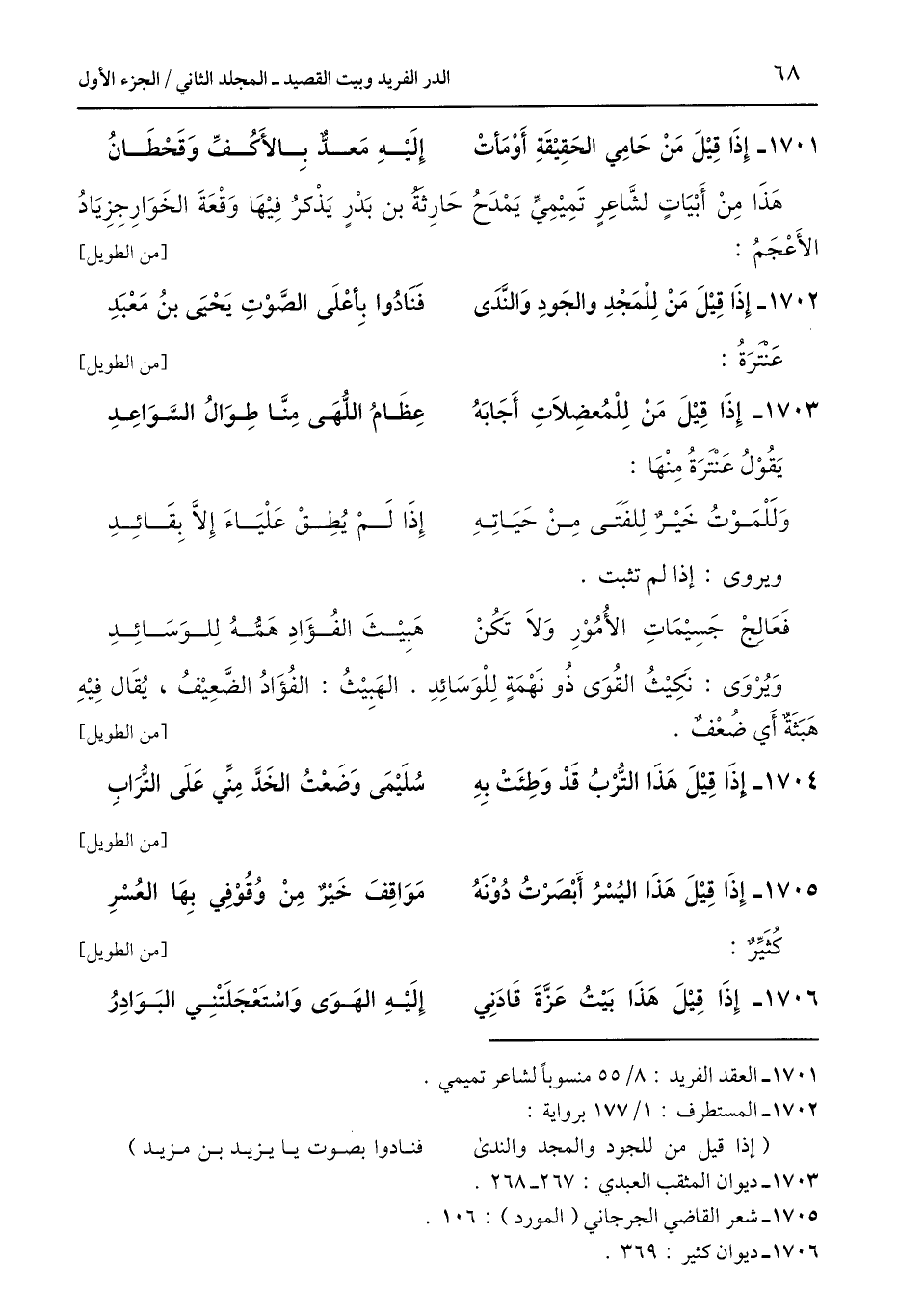 1701 - العقد الفريد: 8/ 55 منسوبًا لشاعر تميمي.