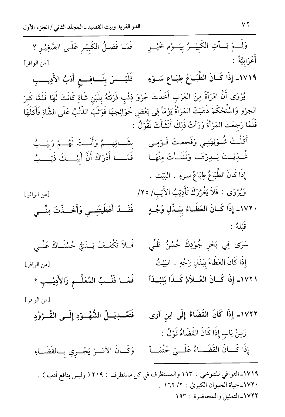 1719 - القوافي للتنوخي: 113 والمستظرف في كل مستطرف: 219 (وليس بنافع أدب).