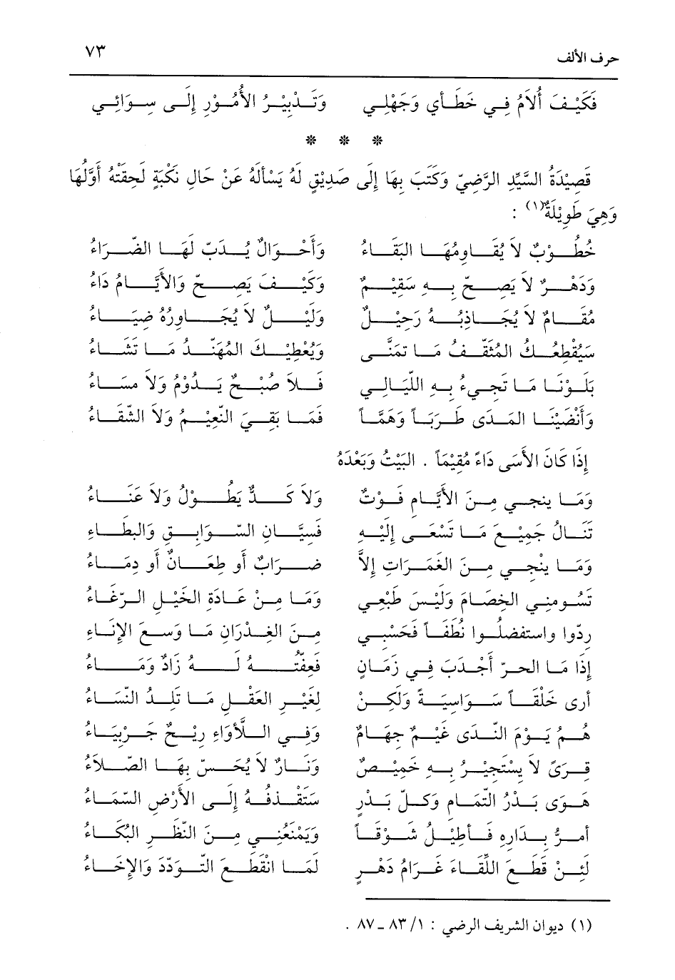 (¬1) ديوان الشريف الرضي: 1/ 83 - 87.