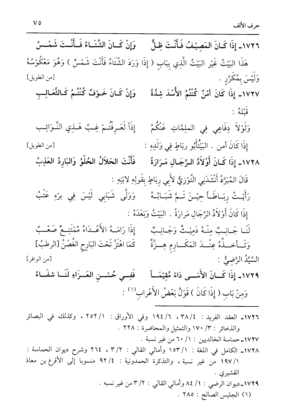 1729 - ديوان الرضي: 1/ 84 وأمالي القالي: 2/ 3 من غير نسبه.