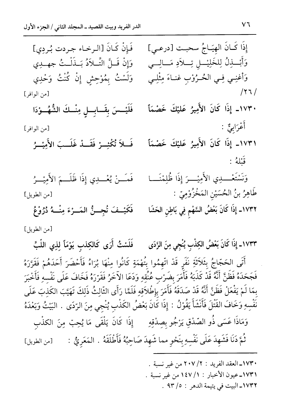 1730 - إِذَا كَانَ الأَمِيرُ عَليْكَ خَصْمًا ... فَلَيْسَ بِقَابِلٍ مِنْكَ الشُّهُوْدَا