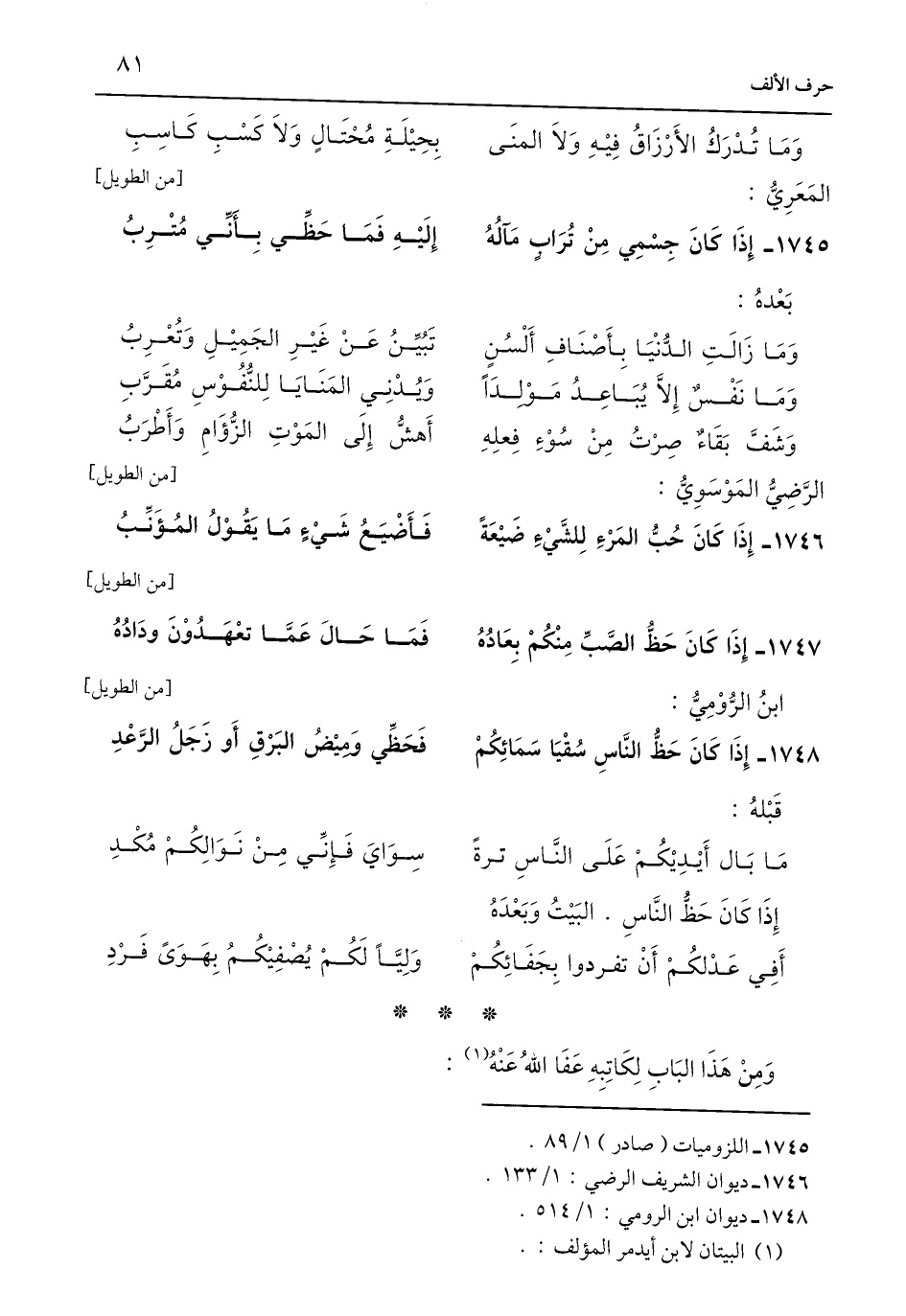 1746 - ديوان الشريف الرضي: 1/ 133.
