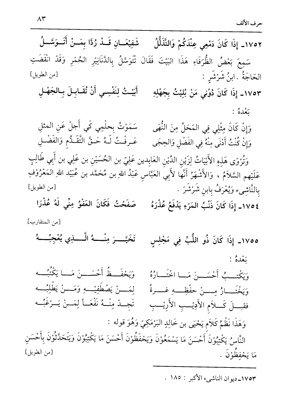 1753 - إِذَا كَانَ دُوْني مَنْ بُلِيْتُ بِجَهْلِهِ ... أَبَيْتُ لِنَفْسِي أَنْ تُقَابِلَ بِالجَهْلِ