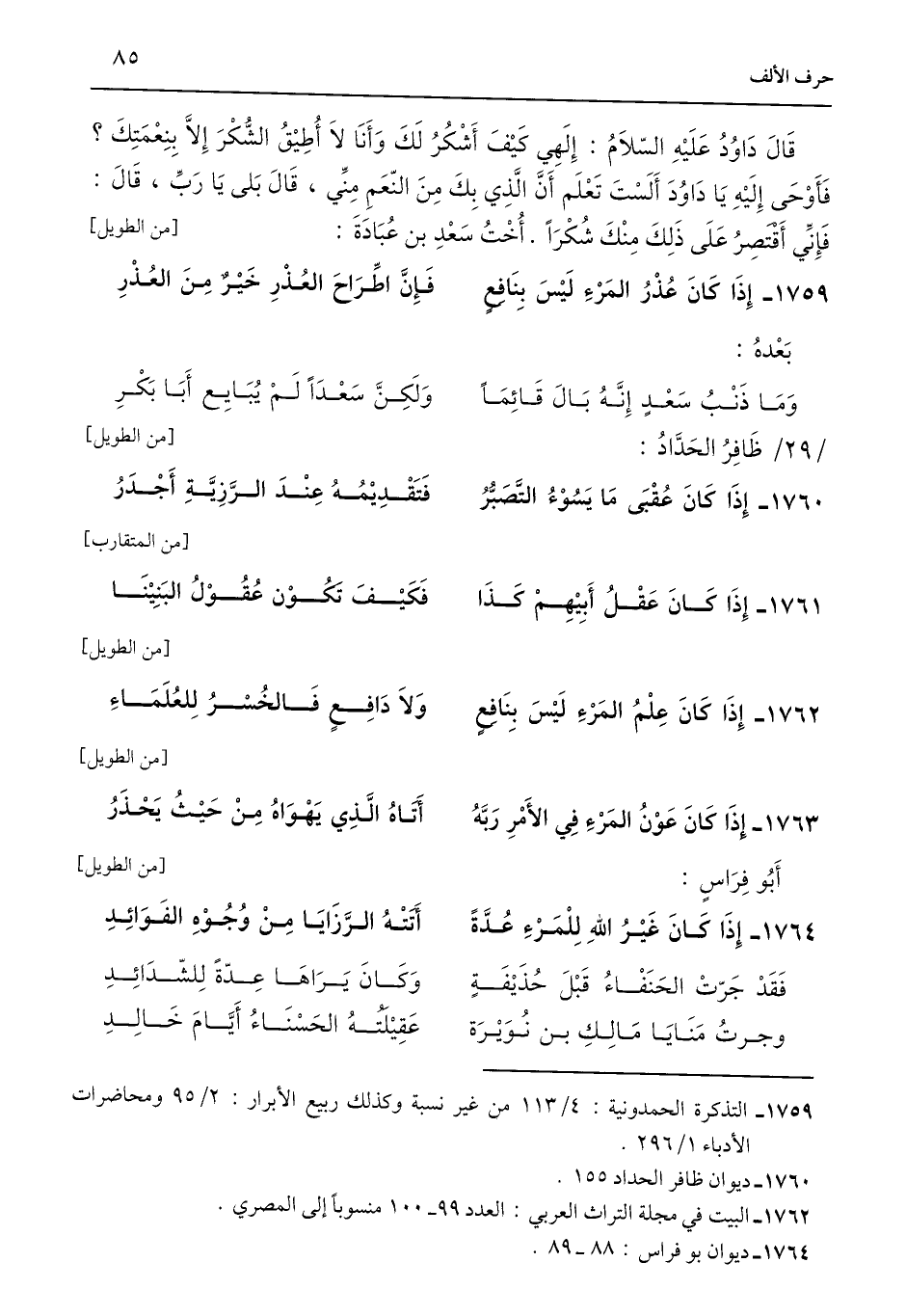 1759 - التذكرة الحمدونية: 4/ 113 من غير نسبة وكذلك ربيع الأبرار: 2/ 95 ومحاضرات الأدباء 1/ 296.