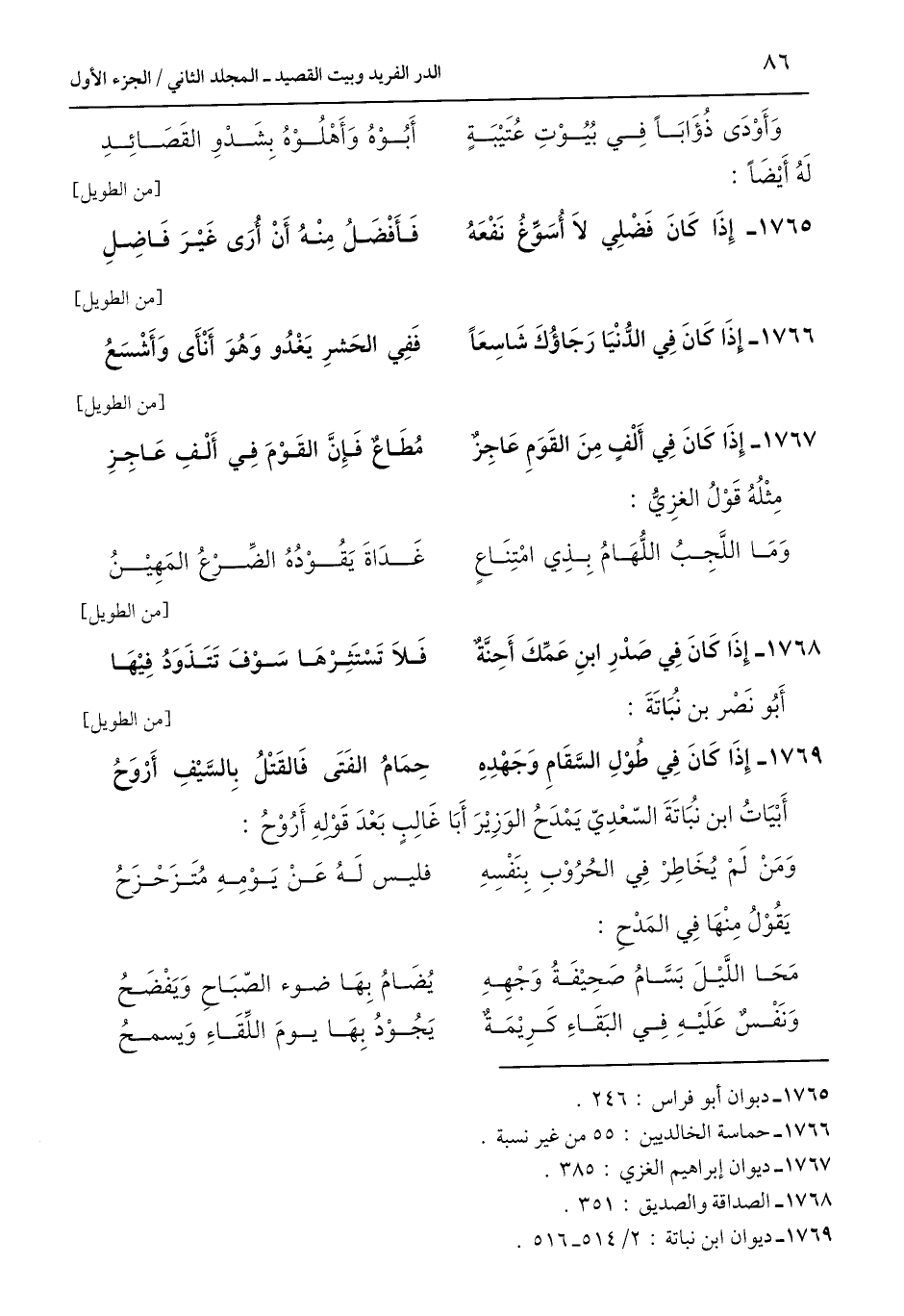 1766 - حماسة الخالديين: 55 من غير نسبة.